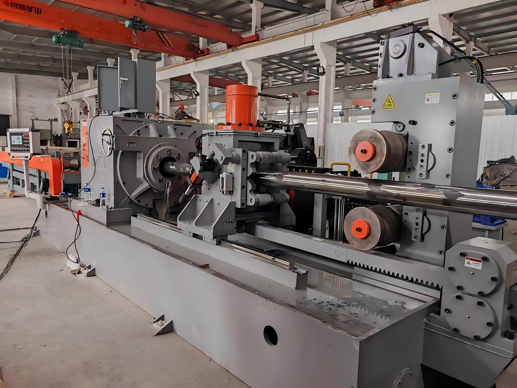 矫直机通过矫直辊对棒材等进行挤压使其改变直线度。制品被矫直辊(主动压力辊、从动压力辊)咬入之后,不断地作直线或旋转运动,因而使制品承受各方面的压缩、弯曲、压扁等变形,较后达到矫直的目的。